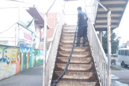 شستوشو و نظافت پلهای عابر پیاده در بلوار مطهری