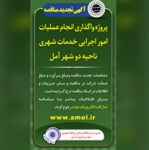 آگهی تجدید مناقصه - پروژه واگذاری انجام عملیات امور اجرایی خدمات شهری ناحیه دو شهر آمل