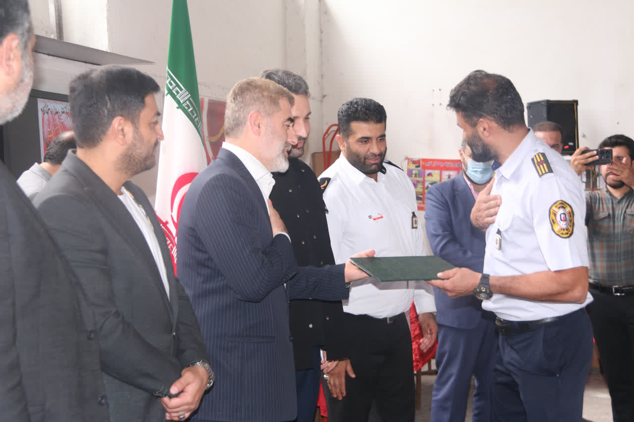 آتش نشانان،" محمود قاسمی، مجتبی شکری، حسین متان، سیدحسن حسینی، میثم خانزاد، مهران قاسم پور، حجت الله احمدی، محمدحسین شکوهی، مصطفی عموزاده وعلی دارابی" با اهدای هدایایی ولوح تقدیر تجلیل شد.